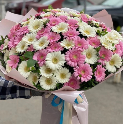 Букет из 101 белой и розовой герберой | Купить в Новосибирске