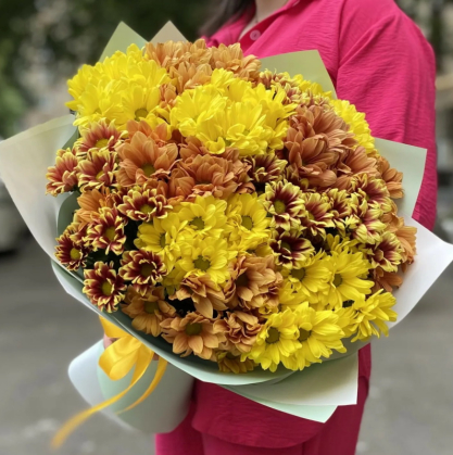 Букет кустовых хризантем с оформлением